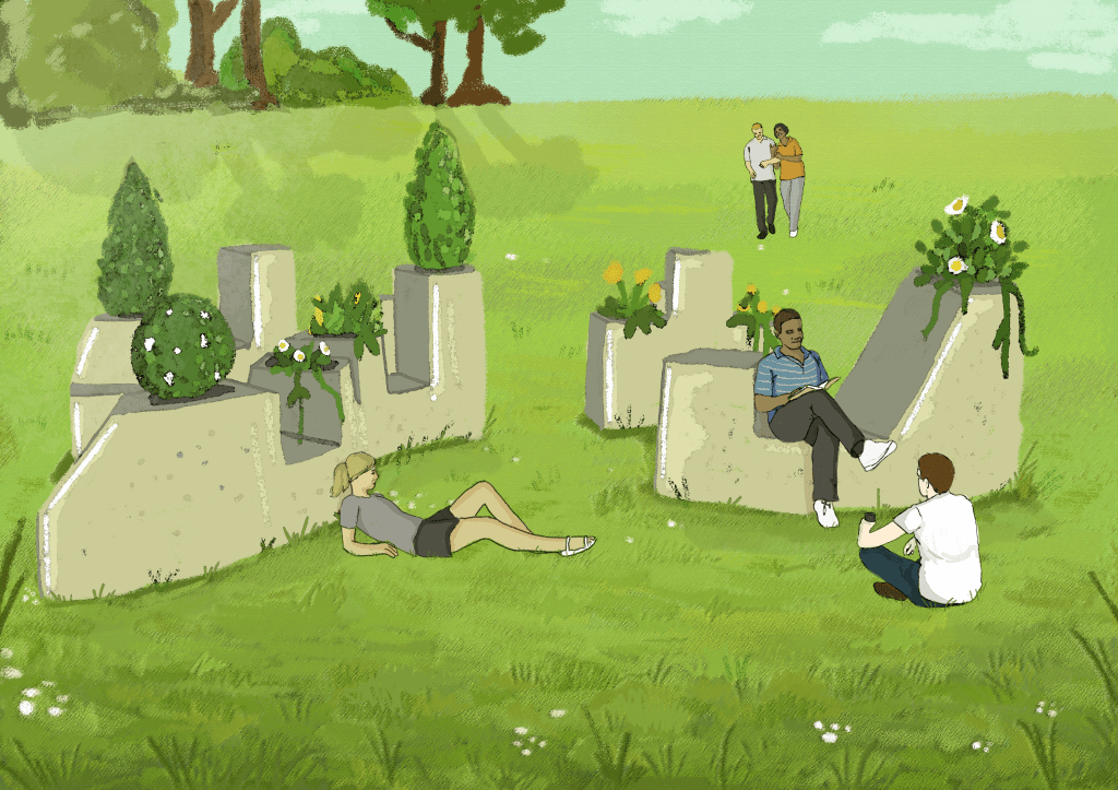 Our outcome was a series of curved benches, which when viewed from above create the shape of a Saxon Cross (Bakewell is known for having a collection of historical examples). Different segments of the benches are at different heights but there is no other visual difference between the segments thus allowing the user to impose their own ideas of how it should be used and encourage creative/playful interaction. The planters would contain plants that are native to the local area which could be cared for by local young people creating a sense of ownership and dedication- the idea being that if you are actively contributing and involved you are more likely to feel that you belong.