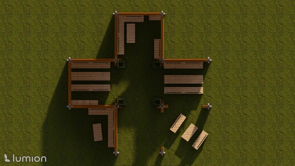 The walls are connected to each other via four-way support posts which the walls slot onto.